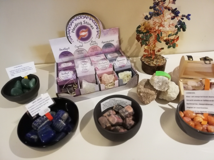 Wij verkopen ook diverse stenen bv rozenkwarts, maar ook hangers en engeltjes van diverse mineralen